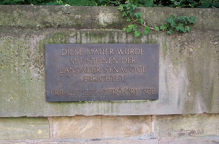 Mit den restlichen Steinen der Synagoge wurde eine Mauer am Savoyenpark errichtet.