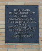 An der angrenzenden Mauer ist eine Gedenktafel angebracht, die an die Judenpogrome in Speyer erinnern soll. Die Tafel wurde am 8. November 1968 durch beide Speyerer Kirchenleitungen – der Protestantischen Kirche der Pfalz und dem Bistum Speyer - enthüllt.