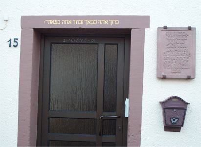 ![]() Hebräische Inschrift über dem Türsturz "Gesegnet seist Du in Deinem Kommen und Deinem Gehen." |