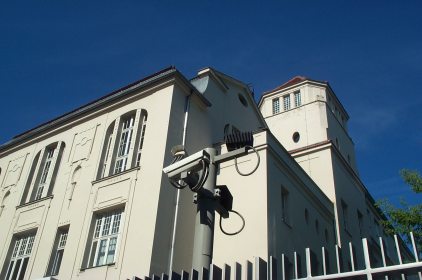 Von außen sieht man nur den Schnell-Imbiss „Salomon Bagels“ und die jüdische Traditionsbuchhandlung Rahel Salamander, wo man nicht nur Judaica-Literatur kaufen kann. Die Einrichtungen werden, wie viele (nicht nur) in Berlin, durch große Betonklötze zur Straße hin und permanente Polizeipräsenz gegen Anschläge geschützt.